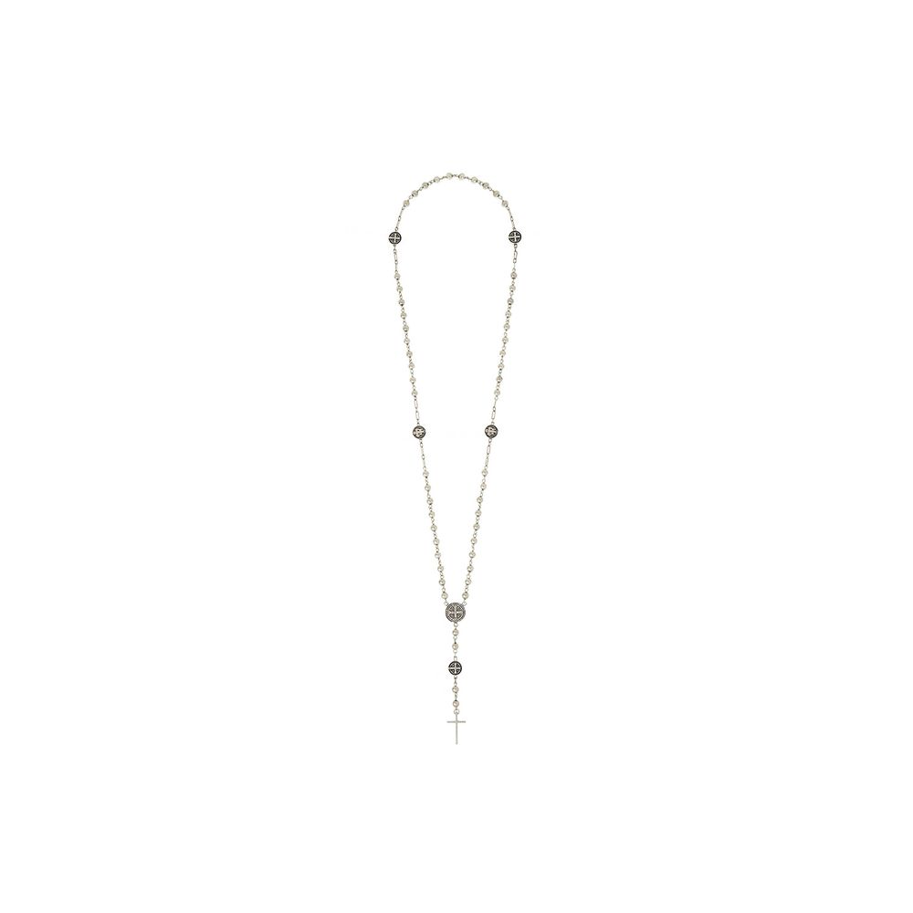 Colar Terço Espírito Santo Pérolas Fé III Prata Boho